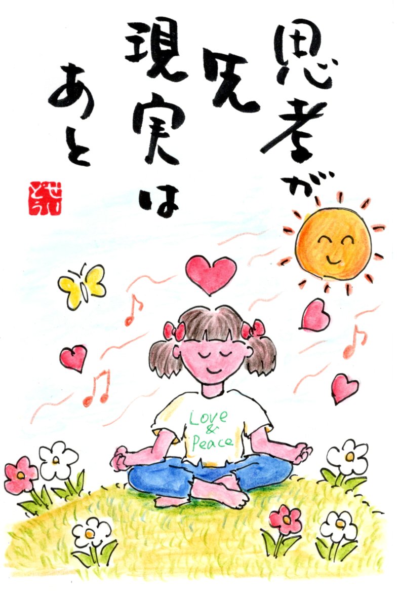 ホーム No.98 思考が先、現実はあと 何かをしたいと思って思考し、 どうすればそれを現実に 出来るかを考え、 そして行動することによって 現実になるのです。 そう、行動が必要なんです 考えているだけでは ゲームは進まないのです さあ、自分の好きな現実を 創造するゲームを楽しみましょう! ホーム<<前の作品 |目次|次の作品>>